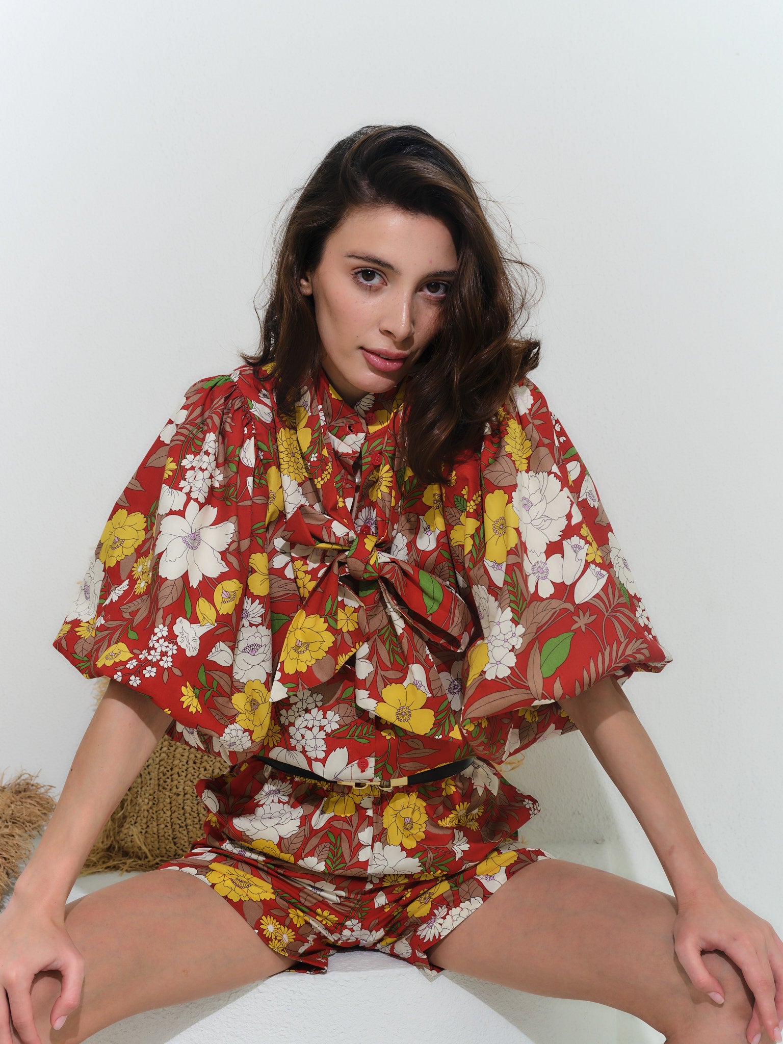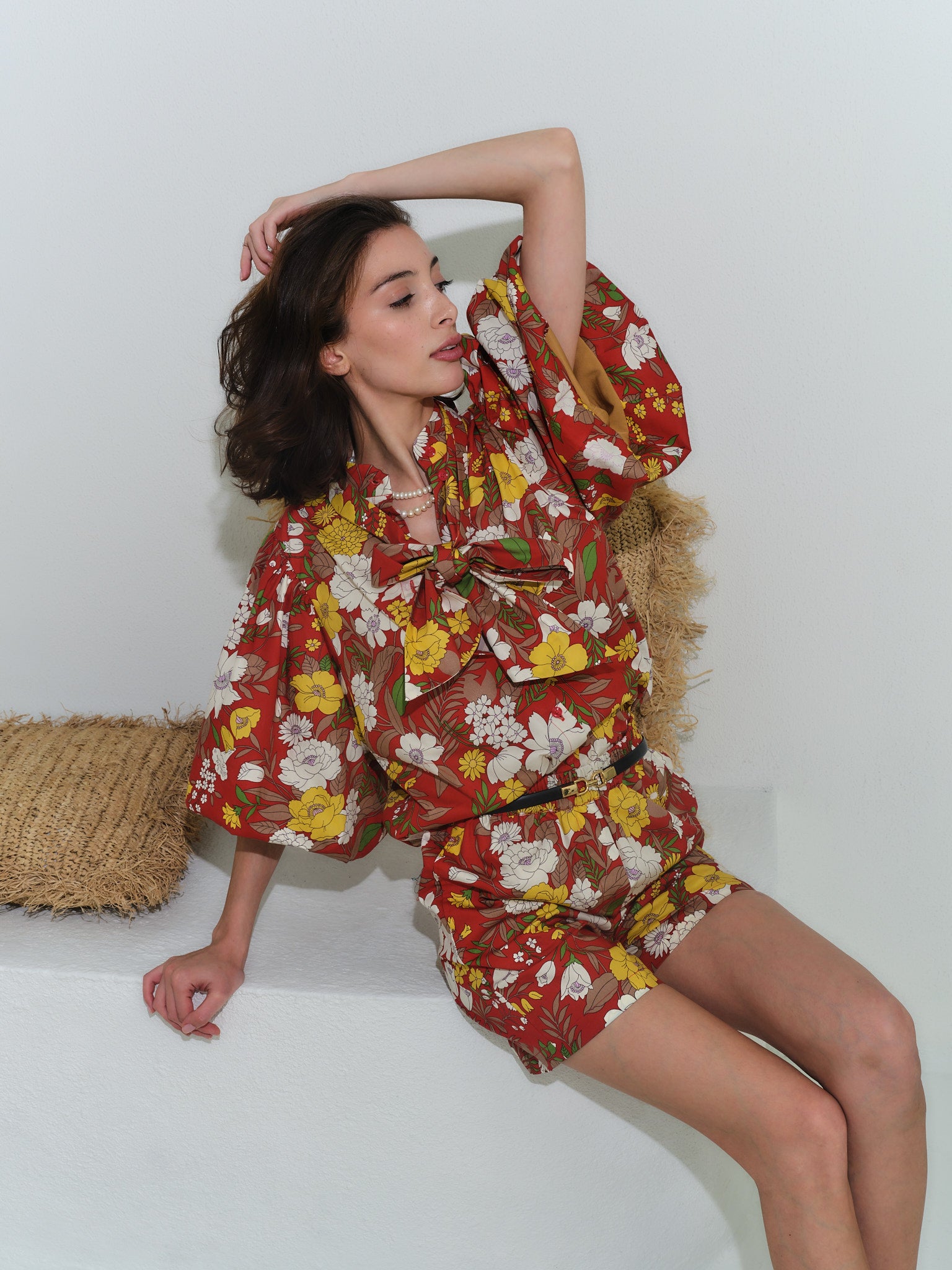 The AYRA SET is made in soft cotton with a detachable bow tie option and balloon sleeves, making it our ultimate summer girl piece! The Set can be worn with matching shorts or with matching trousers.